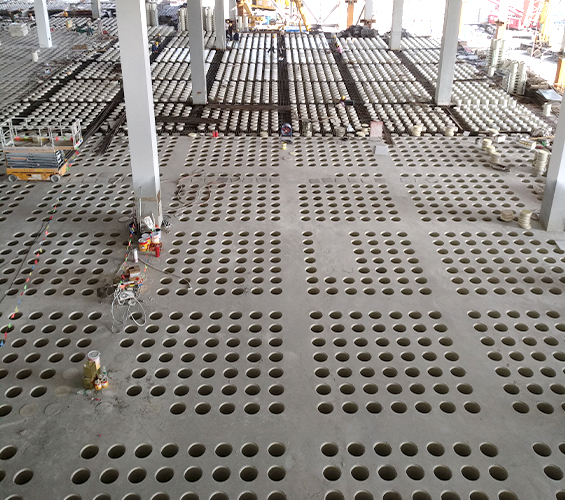 圓形華夫板的生產(chǎn)工藝具有以下優(yōu)勢(shì):1.保證成孔準(zhǔn)確與樓板平整度采用的生產(chǎn)工藝,使用標(biāo)準(zhǔn)模板...